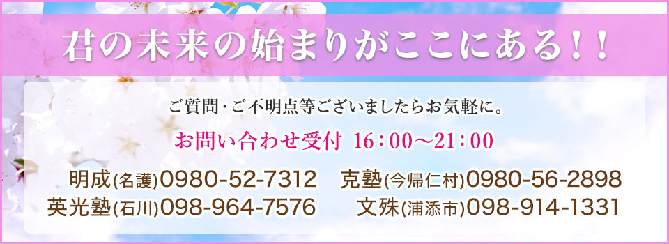 沖縄のK2進学会 明成(名護校)・英光塾(石川校)・克塾(今帰仁村)・文殊(浦添市)のホームページ名護市・今帰仁村・うるま市・浦添市の進学塾ならK2進学会。