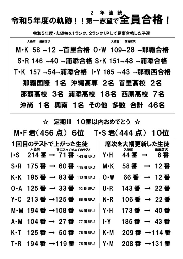 生徒・親からの満足度1番を目指し